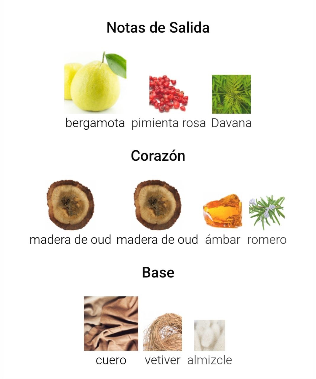 Las Notas de Corazón son madera de oud, madera de oud, ámbar y romero.