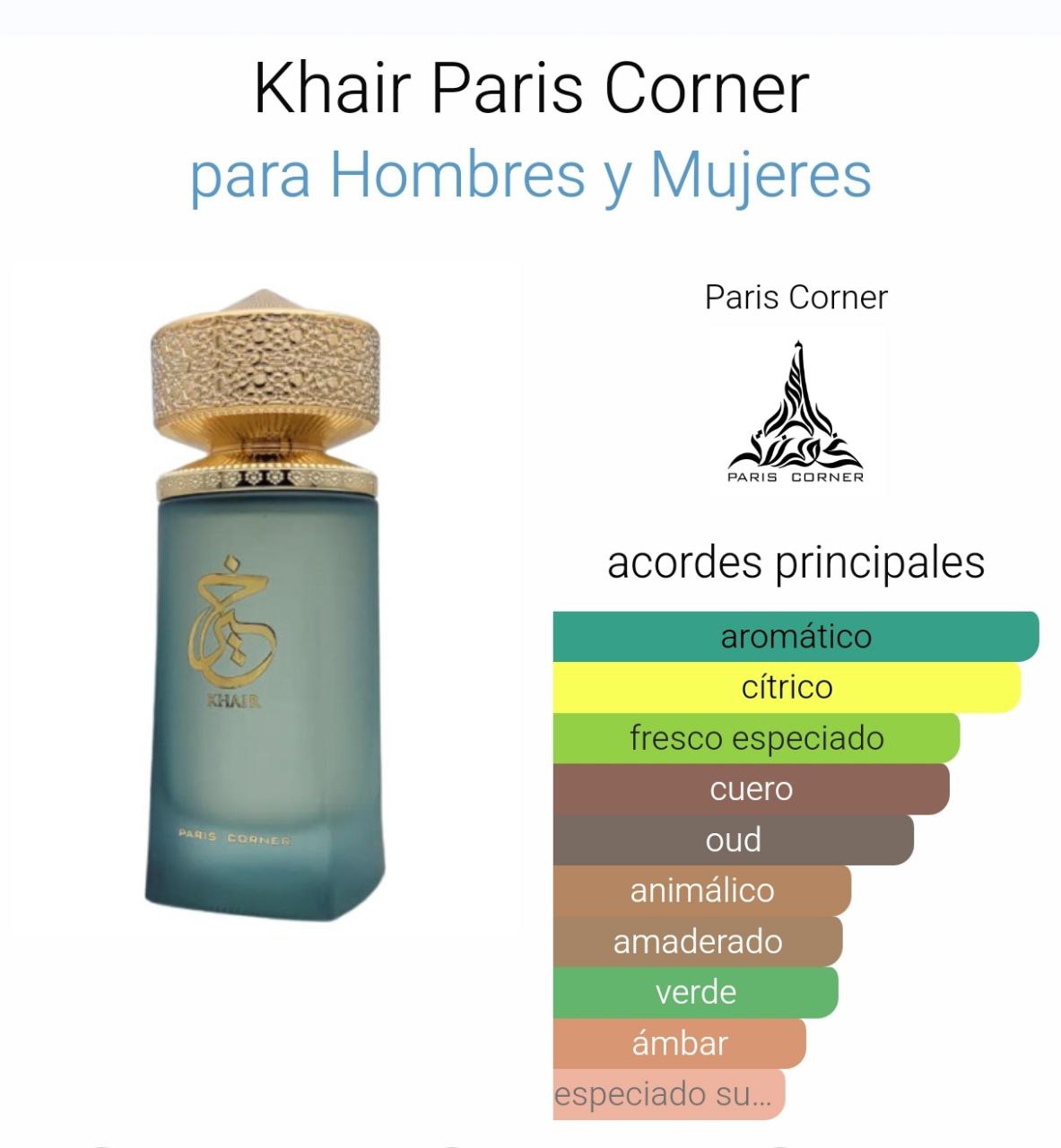 Inspirado en el Valle Imperial de Gissah, Khair no es solo un perfume, sino una expresión de lujo genuino y estilo sofisticado. Elaborada cuidadosamente en los Emiratos Árabes Unidos, esta fragancia es un símbolo de máxima sofisticación y elegancia. Elige Khair para agregar un toque de nobleza y misterio a tu día a día.